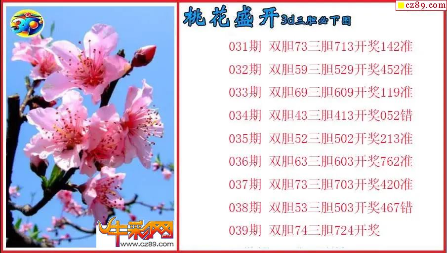 > 26年039期3d 桃花盛开三胆必下图