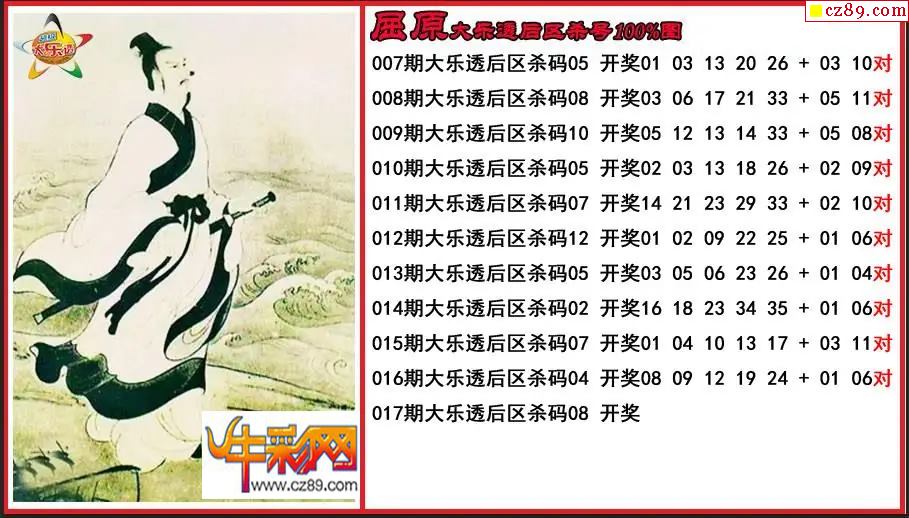大乐透017期屈原后区杀号图
